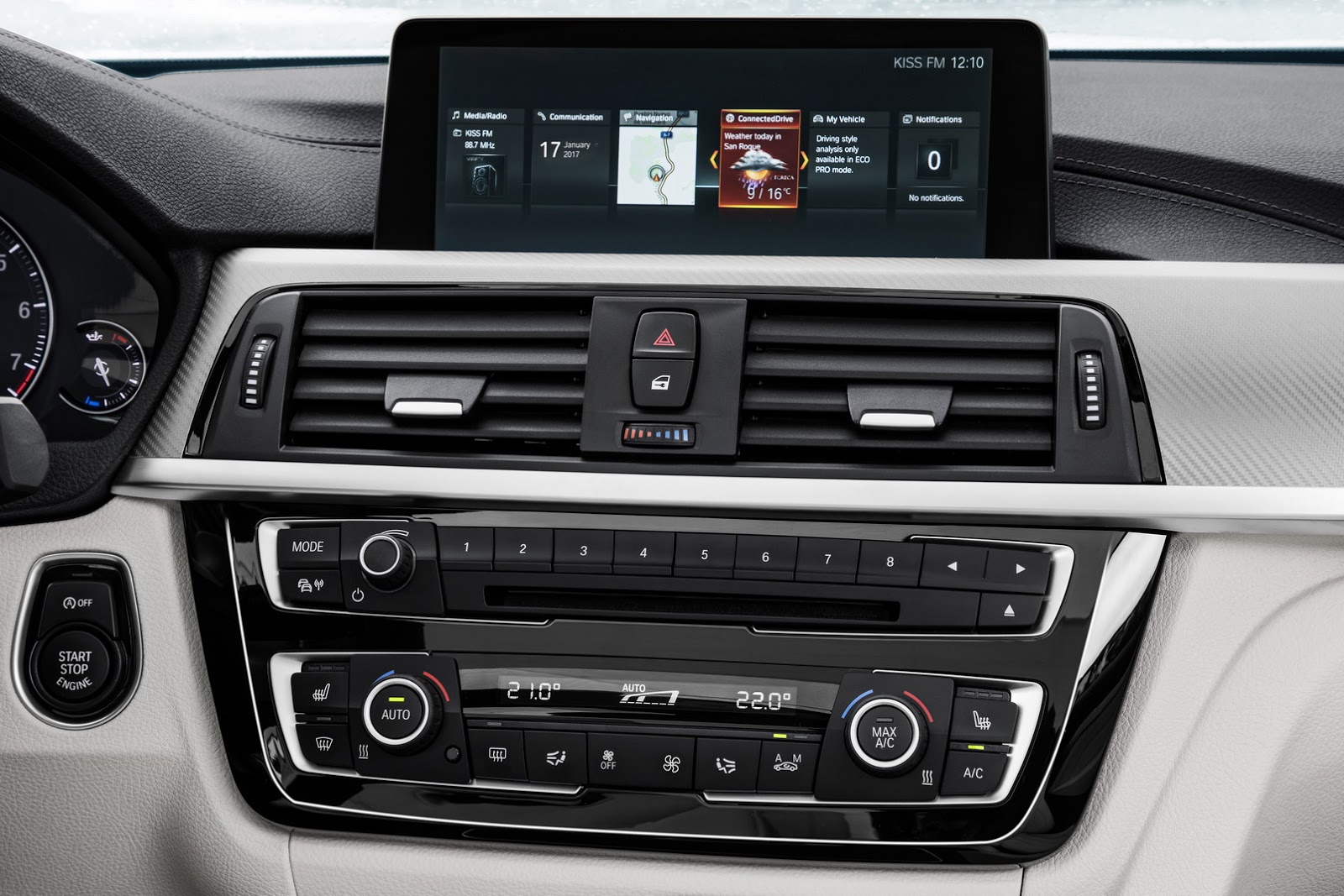Dışarısı gibi iç mekanda da model 7 Serisinden esintiler taşıyor. İlk etapta daha büyük havalandırma kanalları göze çarpıyor. Krom kaplamalar oldukça şık görünüyor. Orta konsolda BMW modellerinden aşina olduğumuz iDrive ekran yer alıyor. Yenilenen bu sistem Apple CarPlay yazılımını destekliyor. Wi-Fi hotspot üzerinden bu ekran internet hizmetide sunuyor.