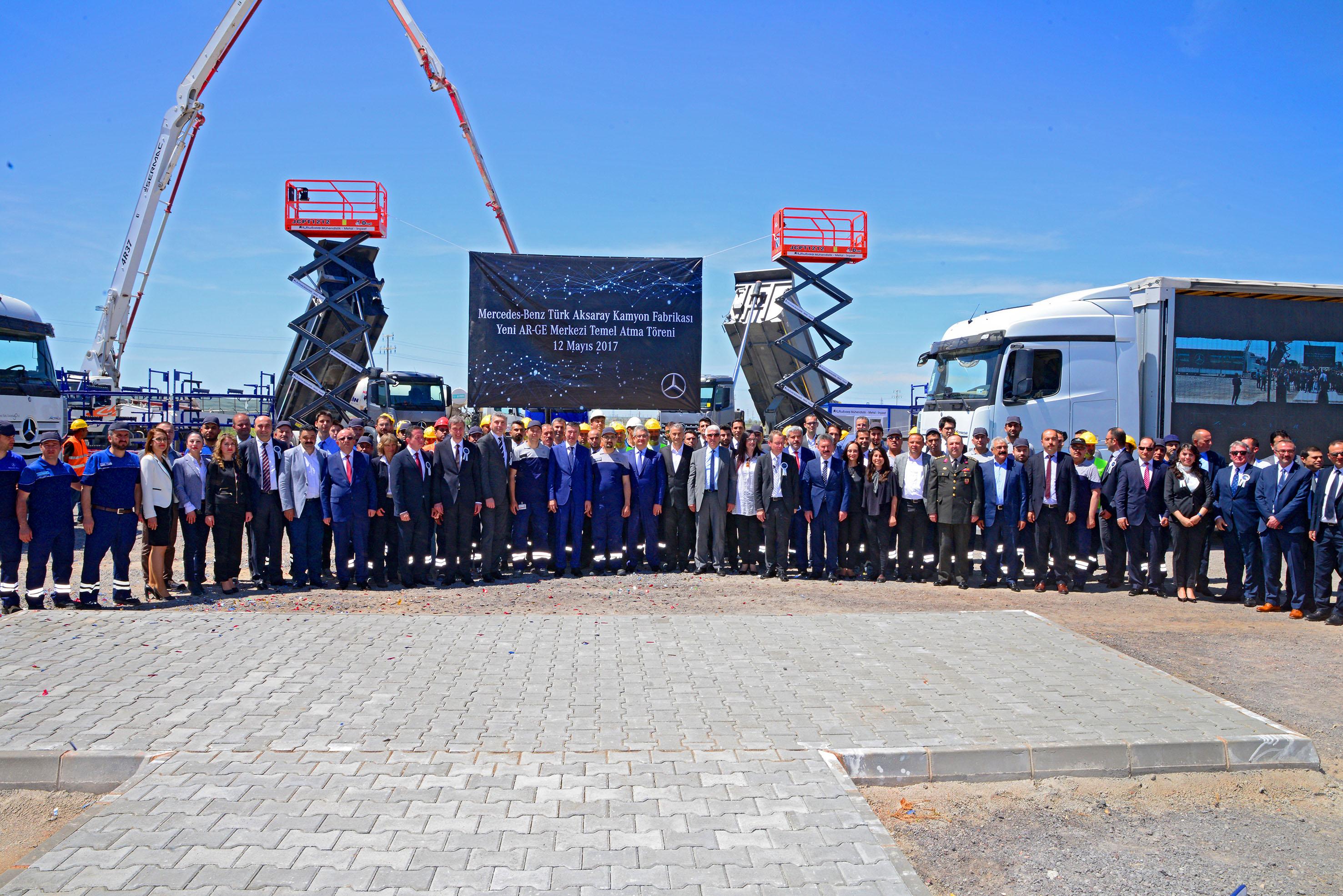 Aksaray Kamyon Fabrikası’nda gerçekleştirilen temel atma törenine Bilim Sanayi ve Teknoloji Bakan Yardımcısı Doç. Dr. Hasan Ali Çelik, Mercedes-Benz Türk Direktörler Kurulu Başkanı Süer Sülün, Mercedes-Benz Kamyon Test Grubu Direktörü Dr. Hannes Möller, Mercedes-Benz Türk Kamyon Fabrikası Direktörü Prof. Dr. Frank Lehmann ve Mercedes-Benz Türk AR-GE Merkezi Müdürü Mustafa Üstertuna katıldılar.
