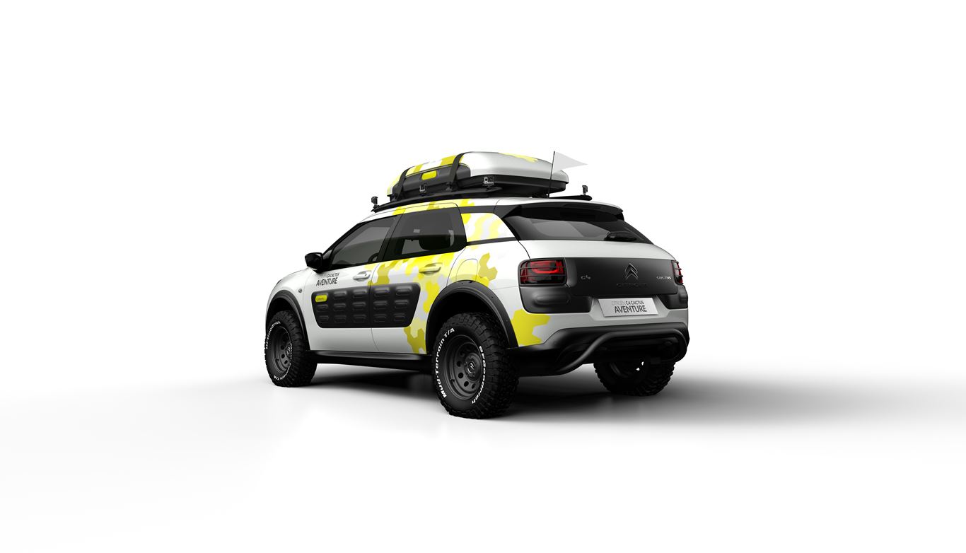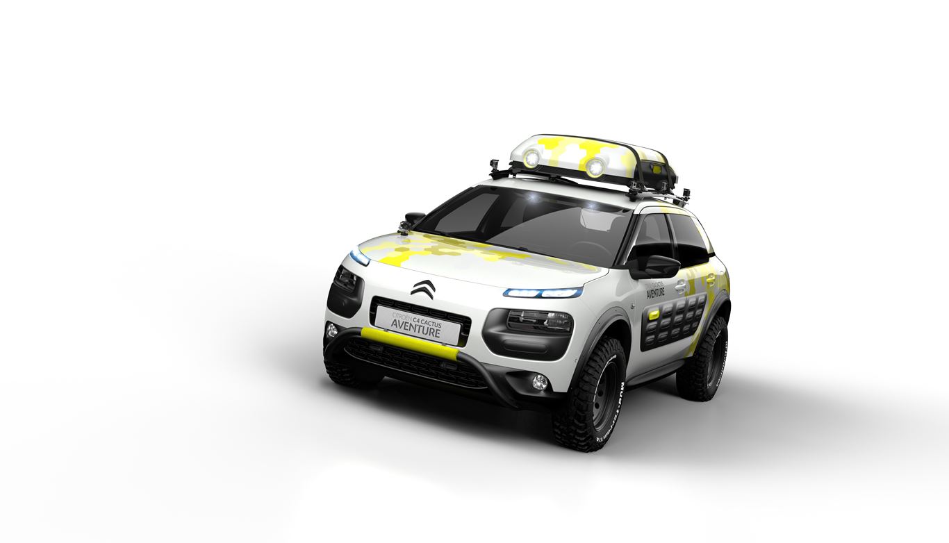 Cenevre Otomobil Fuarı’nda CITROËN, sınırların ötesine geçen ve insanlara paylaşma ve iyimserlik ruhuyla ulaşan Citroën C4 Cactus “Aventure” konsept otomobili de tanıtıyor. Maceraperest ruhu, artırılan yerden yüksekliği, her yola uygun lastikler, gövde altı koruması, ek farlar ve tavan kofrasıyla daha da ön plana çıkıyor. 21’inci yüzyılın maceralarının tam olarak yaşanabilmesi amacıyla Aventure konsept otomobilde yolculuğun en olağanüstü anlarının kaydedilmesi ve paylaşılması için dahili kameralar da yer alıyor.