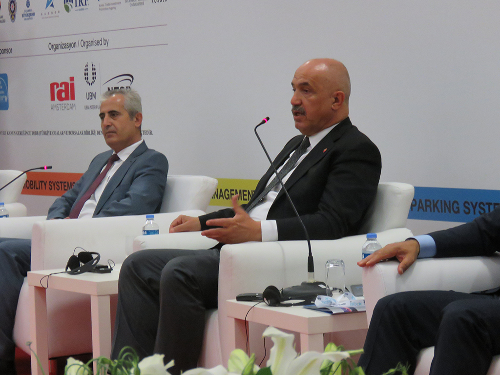 Intertraffic İstanbul “Ulaşım Sistemlerinin Türkiye’deki Geleceği” Paneli’ne konuşmacı ve izleyici olarak katılan çok sayıda belediye temsilcisi, toplu ulaşım konusundaki sıkıntılarını dile getirme fırsatı buldu. Panele, moderator TBMM Bayındırlık, İmar, Ulaştırma ve Turizm Komisyonu Sözcüsü, Erzurum Milletvekili, Intertraffic İstanbul Bilim Kurulu Başkanı Prof. Dr. Mustafa Ilıcalı, Emniyet Genel Müdür Yardımcısı Mehmet Akdeniz, İzmir Büyükşehir Belediyesi Ulaşım Daire Başkanı Kader Poyraz, Adana Büyükşehir Belediyesi Ulaştırma Daire Başkanı İlyas Karabıyık, Balıkesir Büyükşehir Belediyesi Ulaşım Planlama ve Raylı Sistemler Daire Başkanlığı A.Ş. Genel Müdürü Serdar Çiçekler ve Mardin Büyükşehir Belediyesi Ulaşım Daire Başkanı Erol Beşe konuşmacı olarak katıldı.